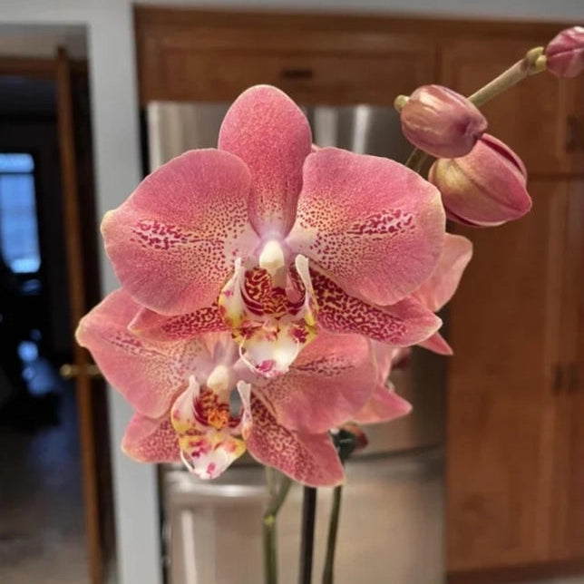 Introducing the Dream On SS Phalaenopsis Orchid, a stunning display of nature's elegance that brightens any space with its vibrant blooms and graceful foliage. Known for its easy maintenance and long-lasting flowers, this exquisite orchid is perfect for both novice and experienced plant enthusiasts. The Dream On SS variety showcases an array of colors that will captivate your senses, making it an eye-catching centerpiece for your home or office. Elevate your decor and bring a touch of tropical paradise indoors with this enchanting orchid.